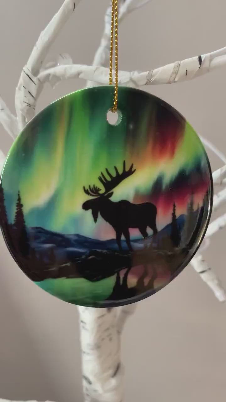Northern Lights Moose Christmas Ornament