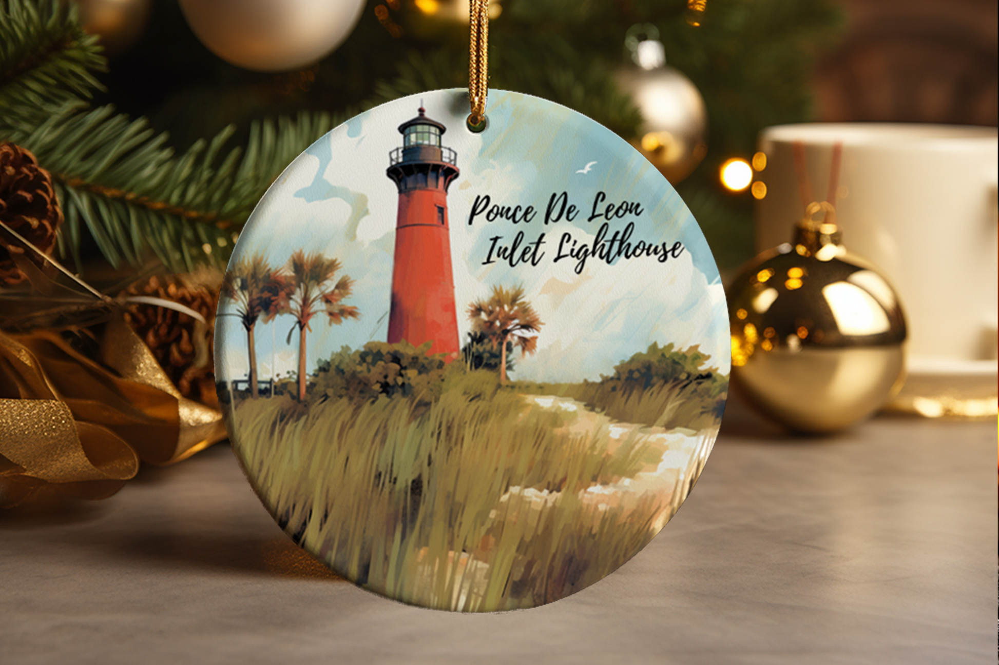 Ponce De Leon Inlet Lighthouse, Central Florida, Souvenir, Ceramic Gift Ornament